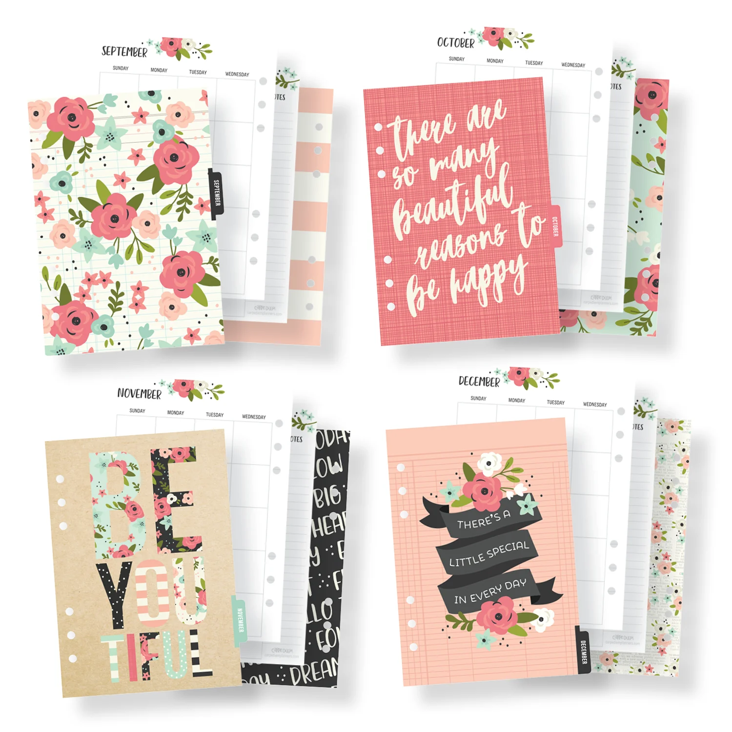 - 12 A5 double-sided monthly calendar inserts (undated)