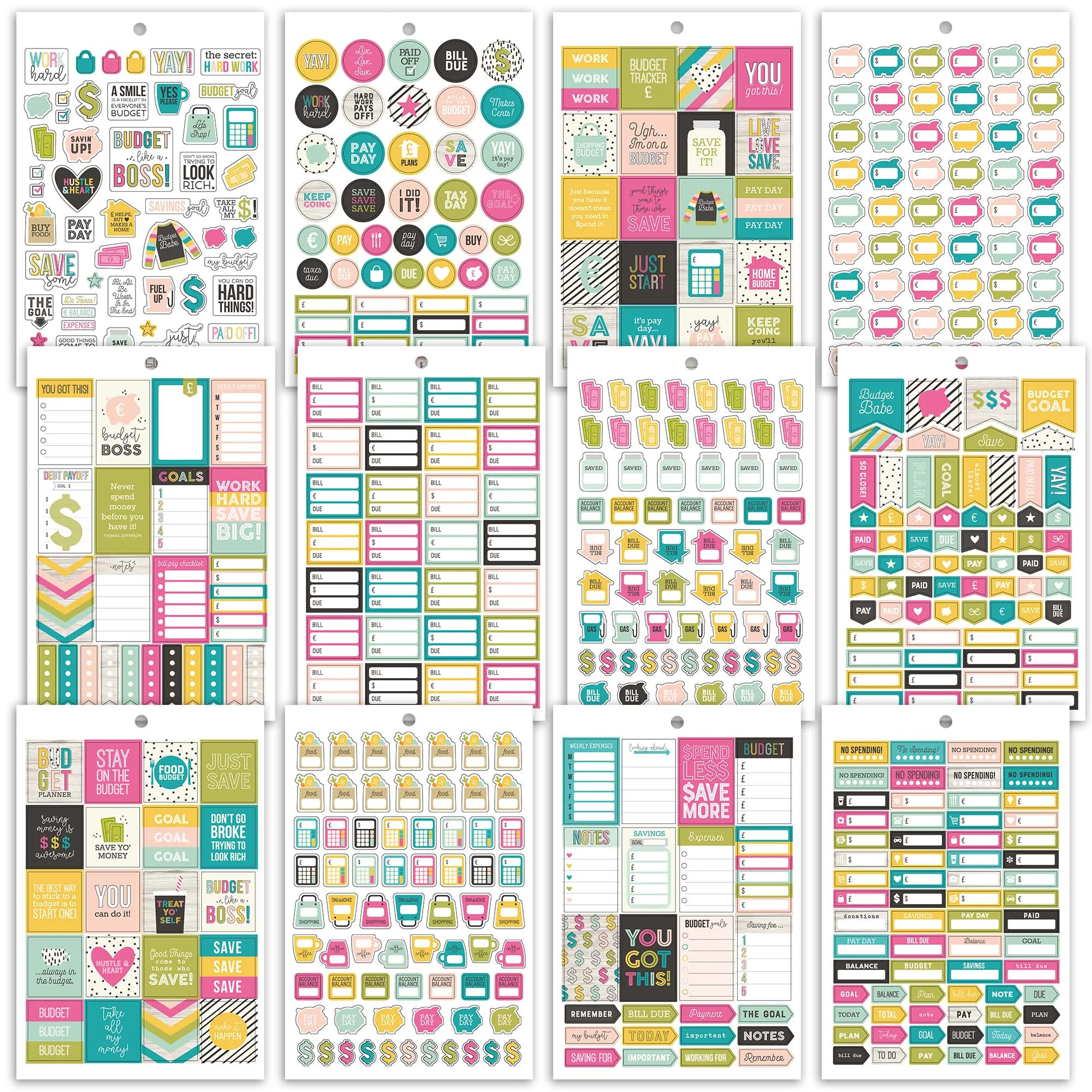 In the pack, you get 561 stickers over 12 sheets based on helping you with your finances and budgeting.
