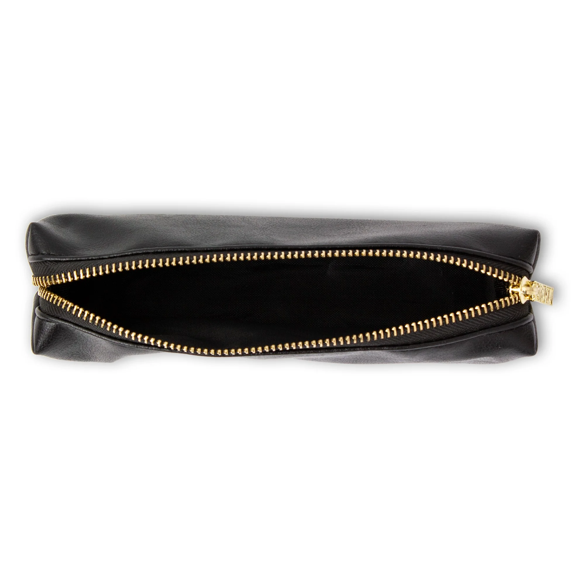 The pencil case is compact in size measuring 2 inches x 7.90 inches, an awesome size for a range of pens and pencils. The slim pencil case is lightweight yet durable and is great for school or professional settings. The pencil case is made from faux leather and includes a luxurious gold zip that is easy to open and close.