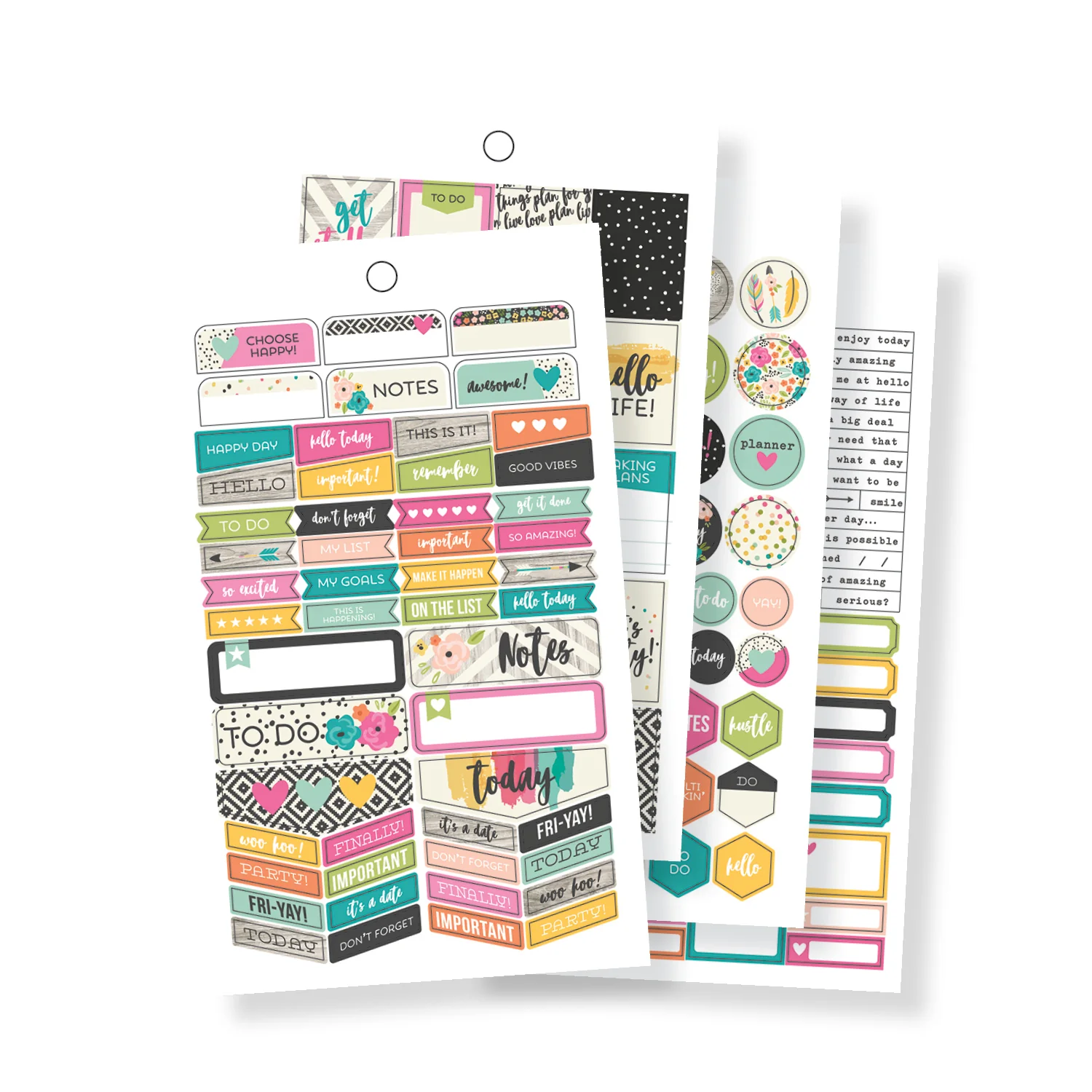In the pack, you get 594 stickers over 12 sheets including stickers that can be used for a pick-me-up! The stickers include such expressions as 'yay me' 'hello life' 'good vibes', lots of flowers and hearts, and much more.